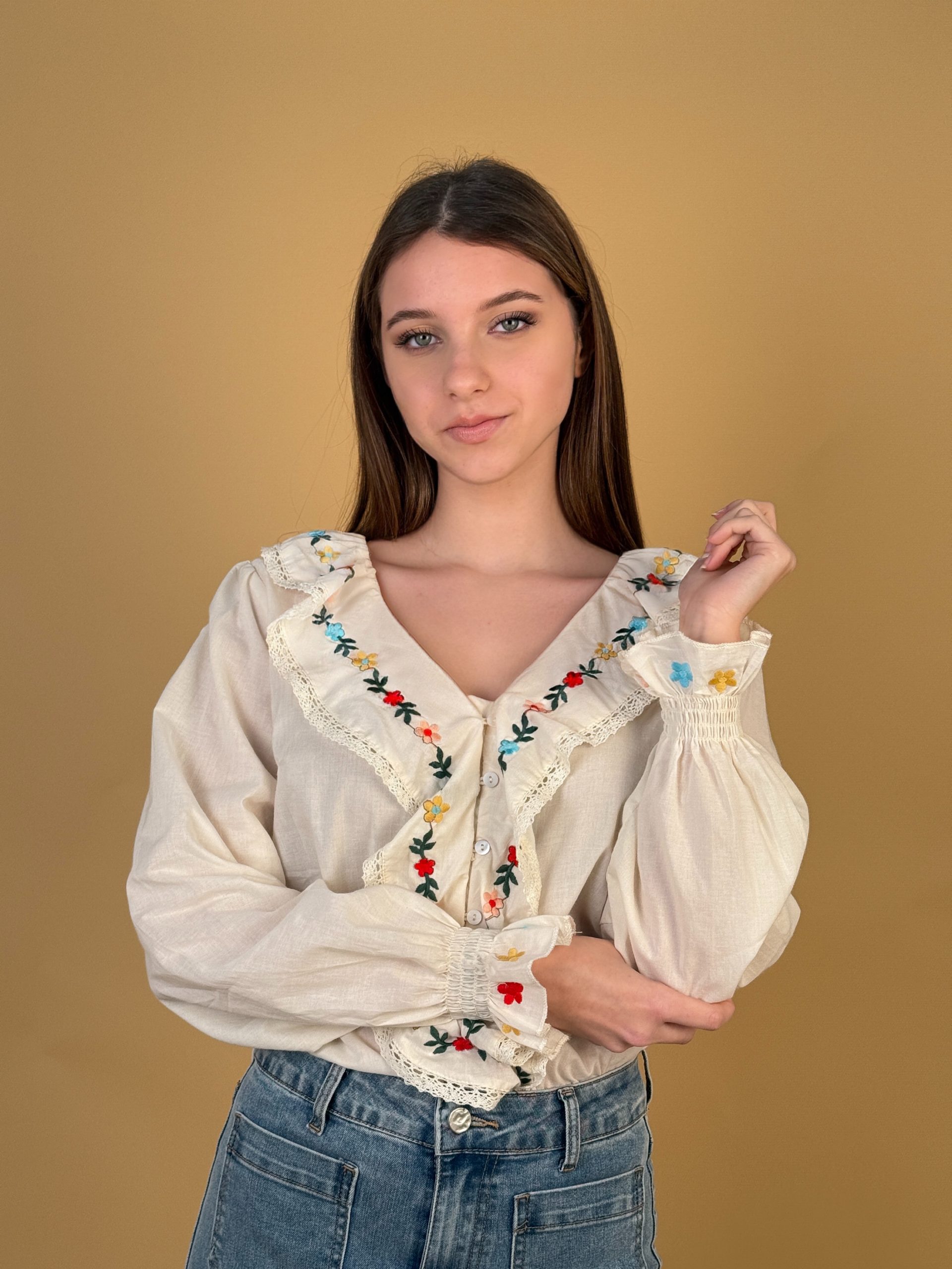 Blusa bordada con volantes